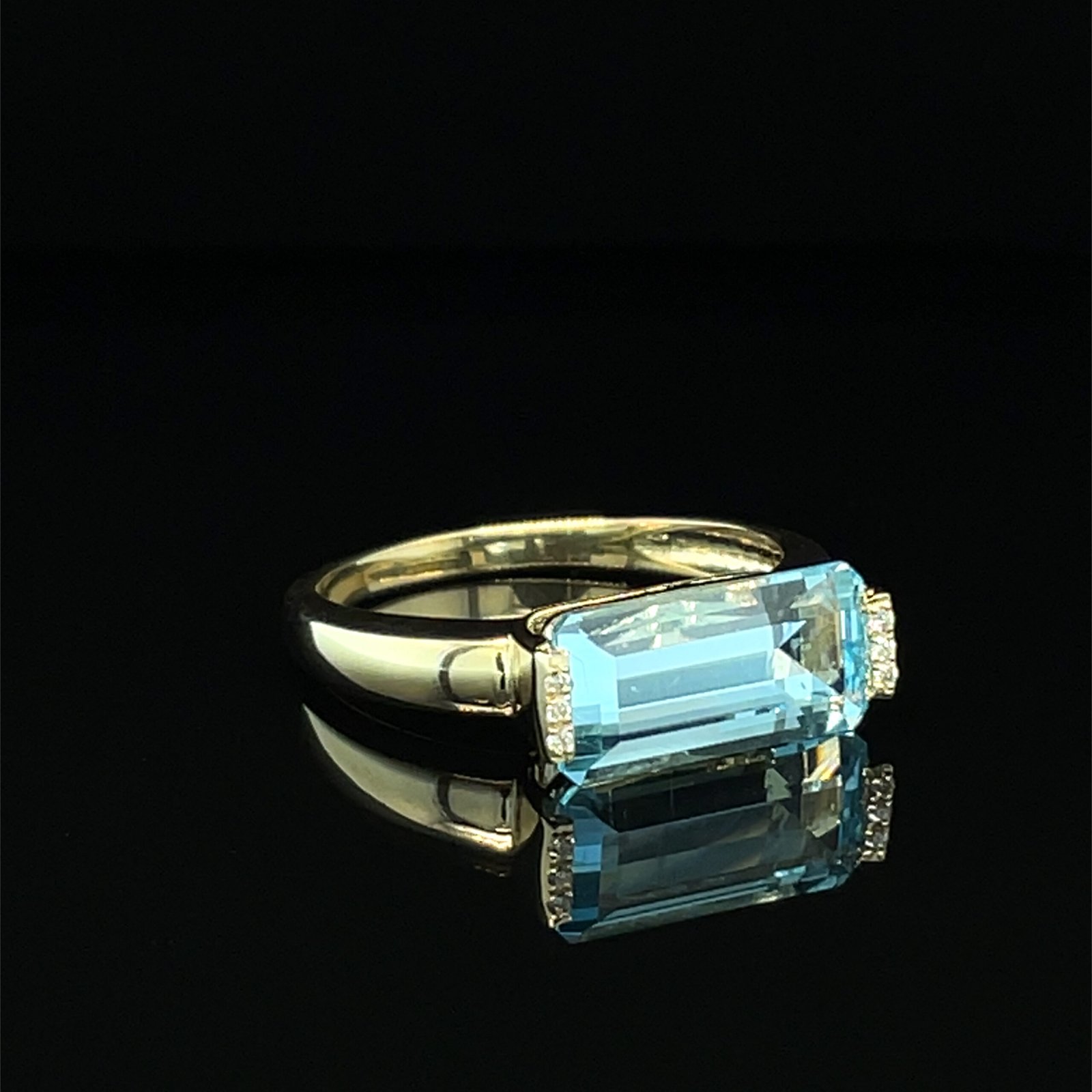 Pierścionek Aqua Vérité – złoty pierścionek z niebieskim topazem i brylantami | Biżuteria złota Katowice, biżuteria na zamówienie