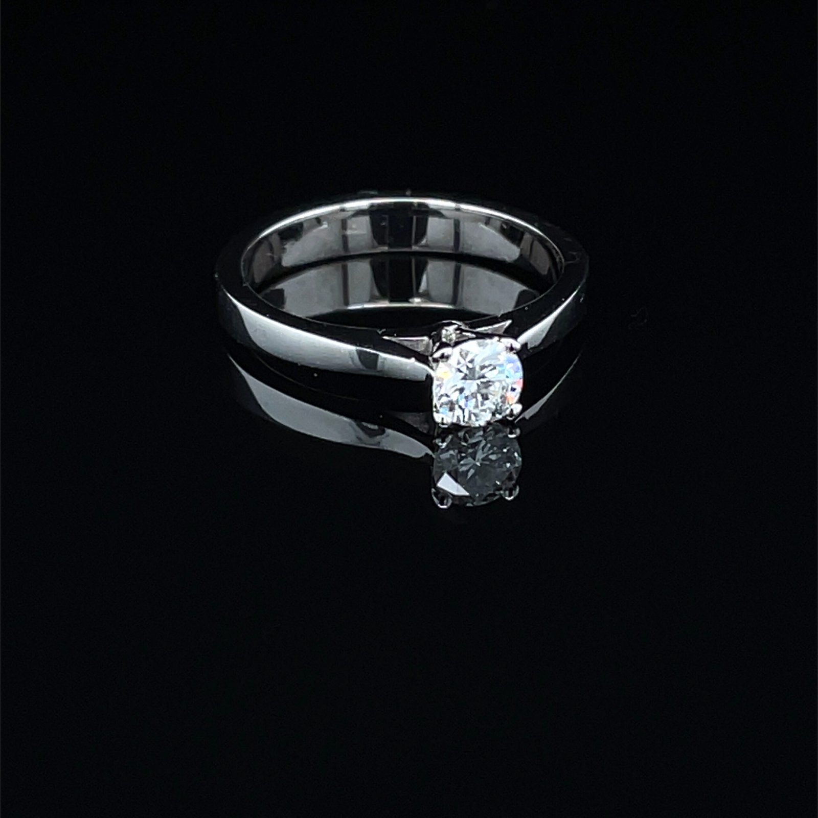 Pierścionek Arctic Dusk to kwintesencja elegancji w minimalistycznej formie. Wykonany ze złota 14k (próba 585), zachwyca chłodnym, lustrem połyskującym wykończeniem, które podkreśla czystość i blask centralnego brylantu. Subtelne łapki osadzenia wydobywają z kamienia maksimum światła, nadając mu niemal lodowy połysk.